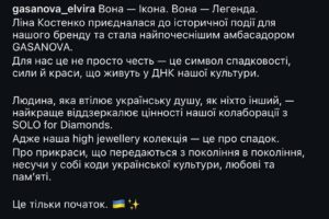 «Для нас Ліна Василівна — це не просто легенда. Це енергія культури, жіночності, сили. Ми хотіли створити образ, який поєднує мудрість і сучасність», — сказала Гасанова, презентуючи нову колекцію.