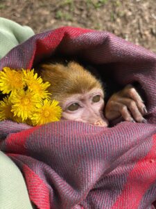 Ветклініка працює в напівпідвальному приміщенні з шумоізоляцією — там тихо навіть під час вибухів. Але тварини, які живуть надворі, особливо мавпи, страждають. Вони чутливі до стресу, реагують на звуки, хворіють. Мавпи — хронічні пацієнти, їх лікують роками. Один із таких — магот Тосік. Його забрали з контактного зоопарку в Харкові. У нього була відкрита черепно-мозкова травма, два переломи, гастрит і дуоденіт. Він місяць лежав під крапельницями, а їв тільки сосиски і кока-колу — бо нічого іншого йому не давали. Зараз Тосік — зірка TikTok, він живе, одужує, повторює за «батьками» всі рухи, і зрештою знову почав їсти нормальну їжу.
